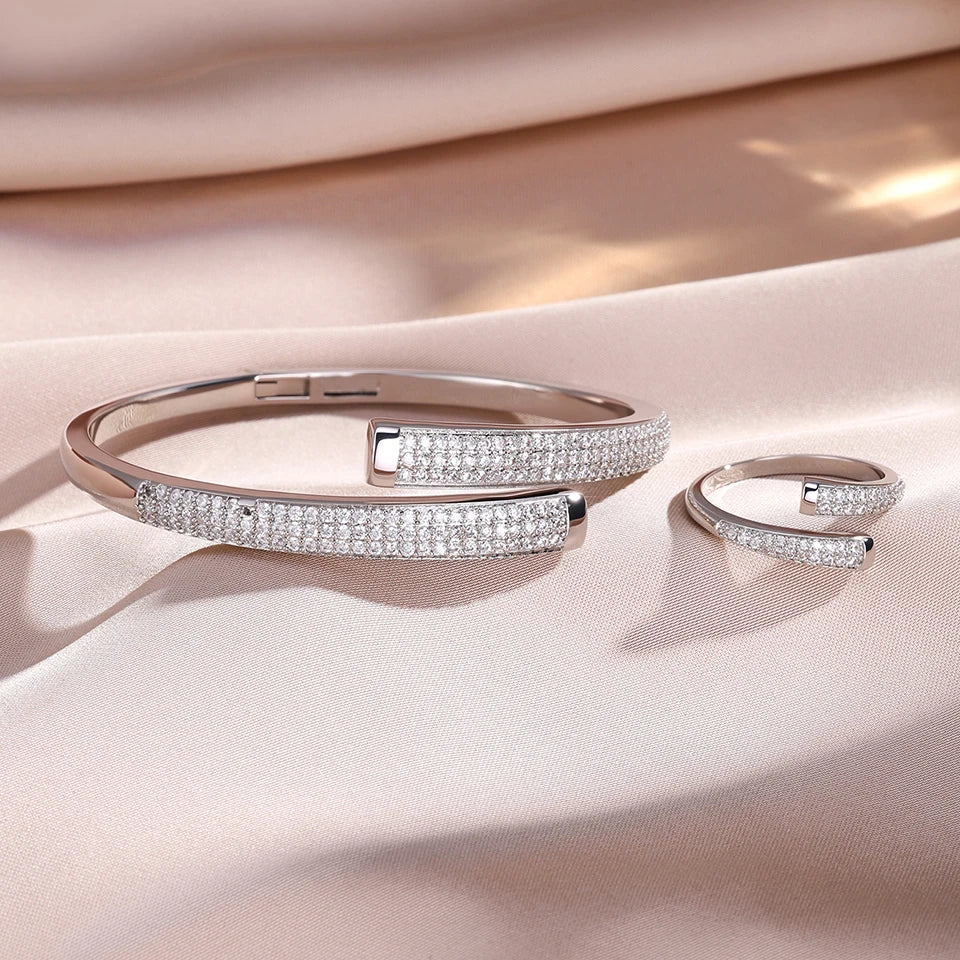 This luxurious and stylish bracelet–ring combination features a bold square design accented with sparkling diamond-like zircon stones. Its elegant yet sexy aesthetic makes it an ideal accessory for women attending parties, banquets, and other fashionable events. Designed to elevate any outfit, this piece adds a touch of glamour and sophistication while remaining comfortable enough for all-day or evening wear.