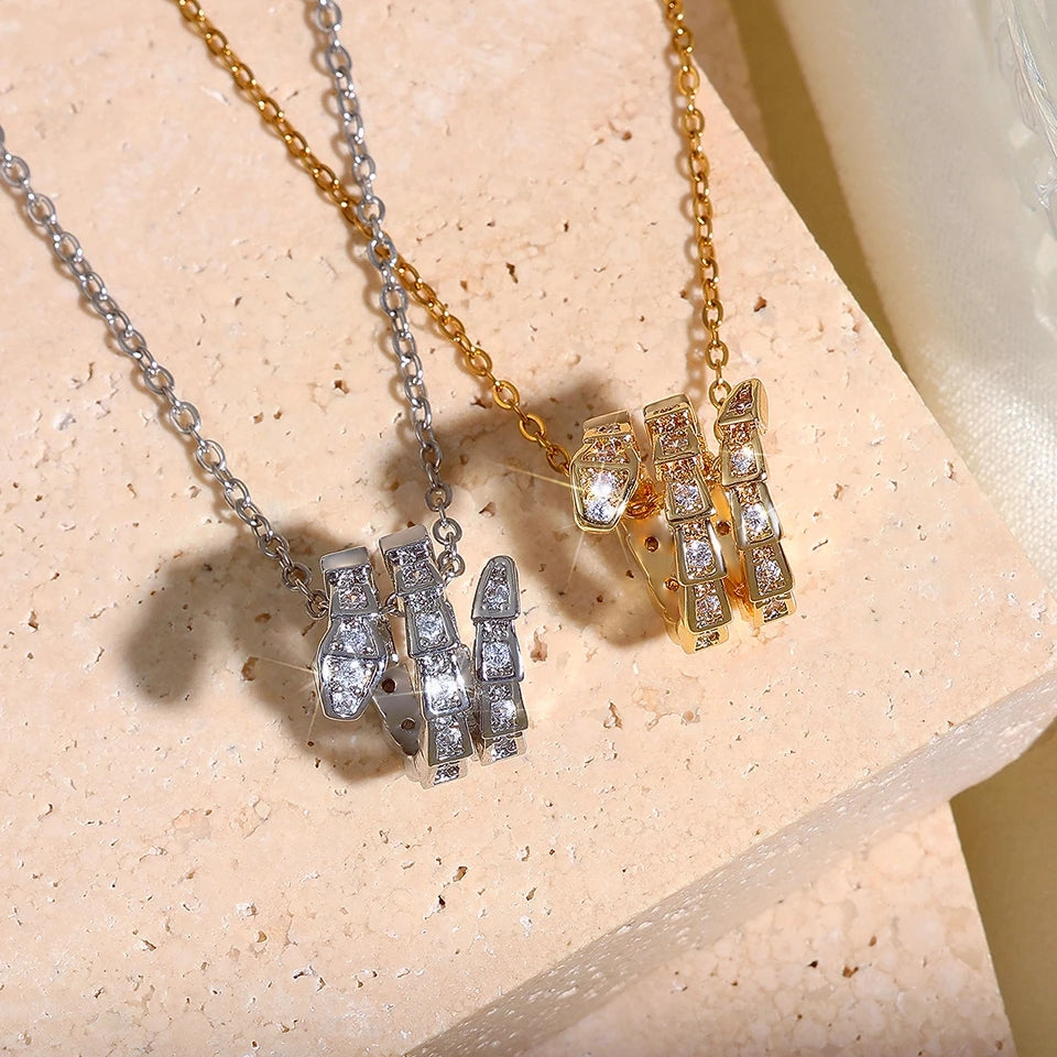 Snake Bone Inlaid Zirconium Pendant Necklace