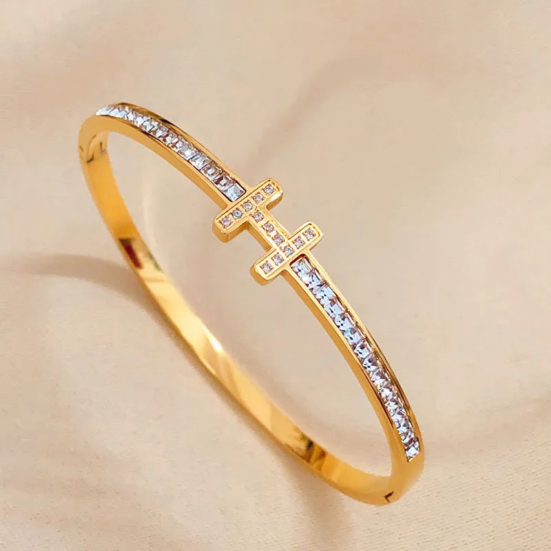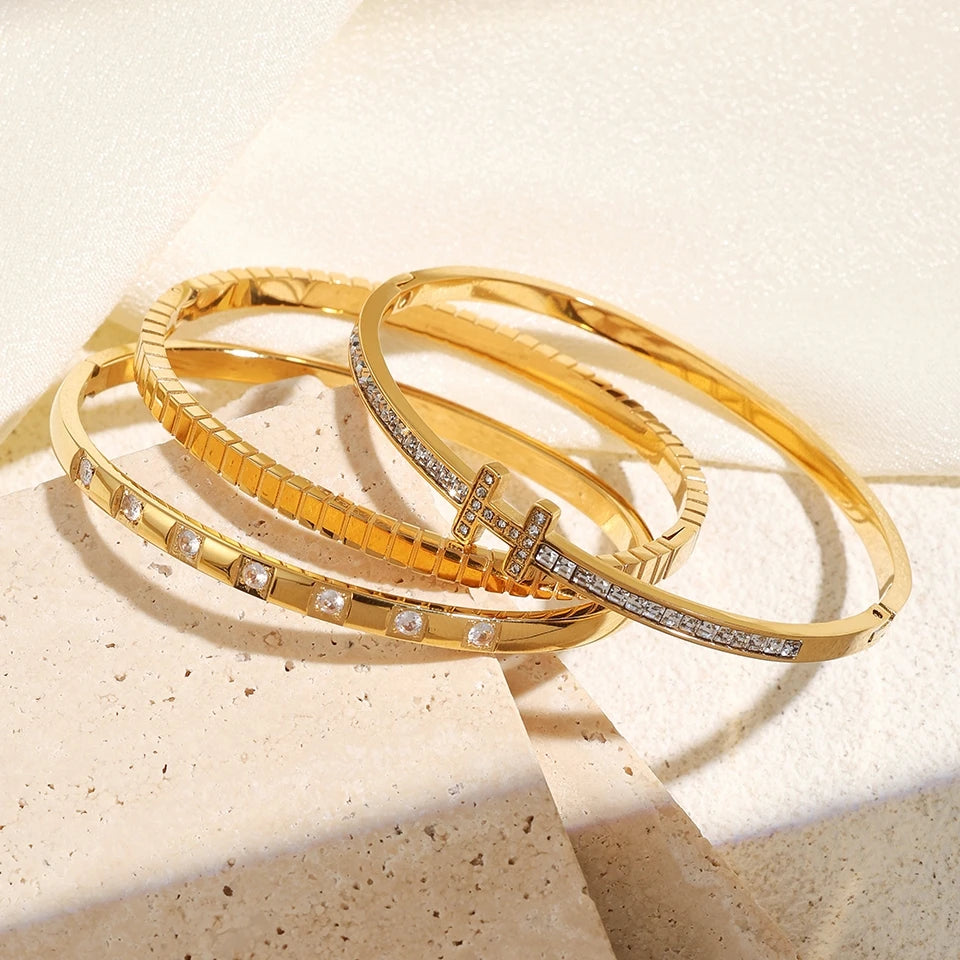This stylish stacking bracelet set features elegant letter-shaped accents inlaid with sparkling zircon stones, adding a personalized and fashionable touch to any look. Crafted from durable stainless steel and finished with luxurious 18K gold plating, the set offers long-lasting shine and sophistication. Perfect for women who enjoy trendy layered jewelry, these bracelets make a thoughtful couple’s holiday gift and are ideal for daily wear, parties, and special celebrations.