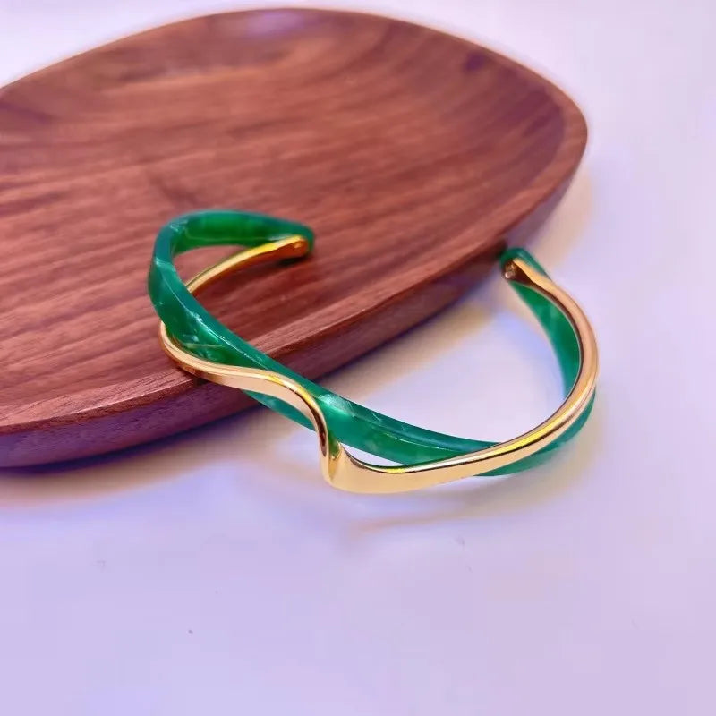 This elegant bracelet features a stunning white shell inlay set into a sleek, curved metal bangle design. With its modern geometric C-shaped opening, it offers both style and easy wear. Perfect for women who appreciate artistic and contemporary jewelry, this bracelet makes a beautiful accessory for daily outfits, special occasions, or thoughtful gifting. Its refined blend of natural shell and smooth metal adds a touch of sophistication to any look.